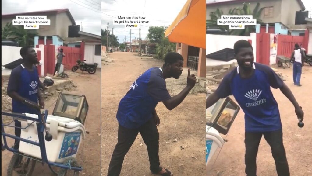 A fun milk seller is trending over his painful broken heart story he shared to a momo vendor at Kasoa.